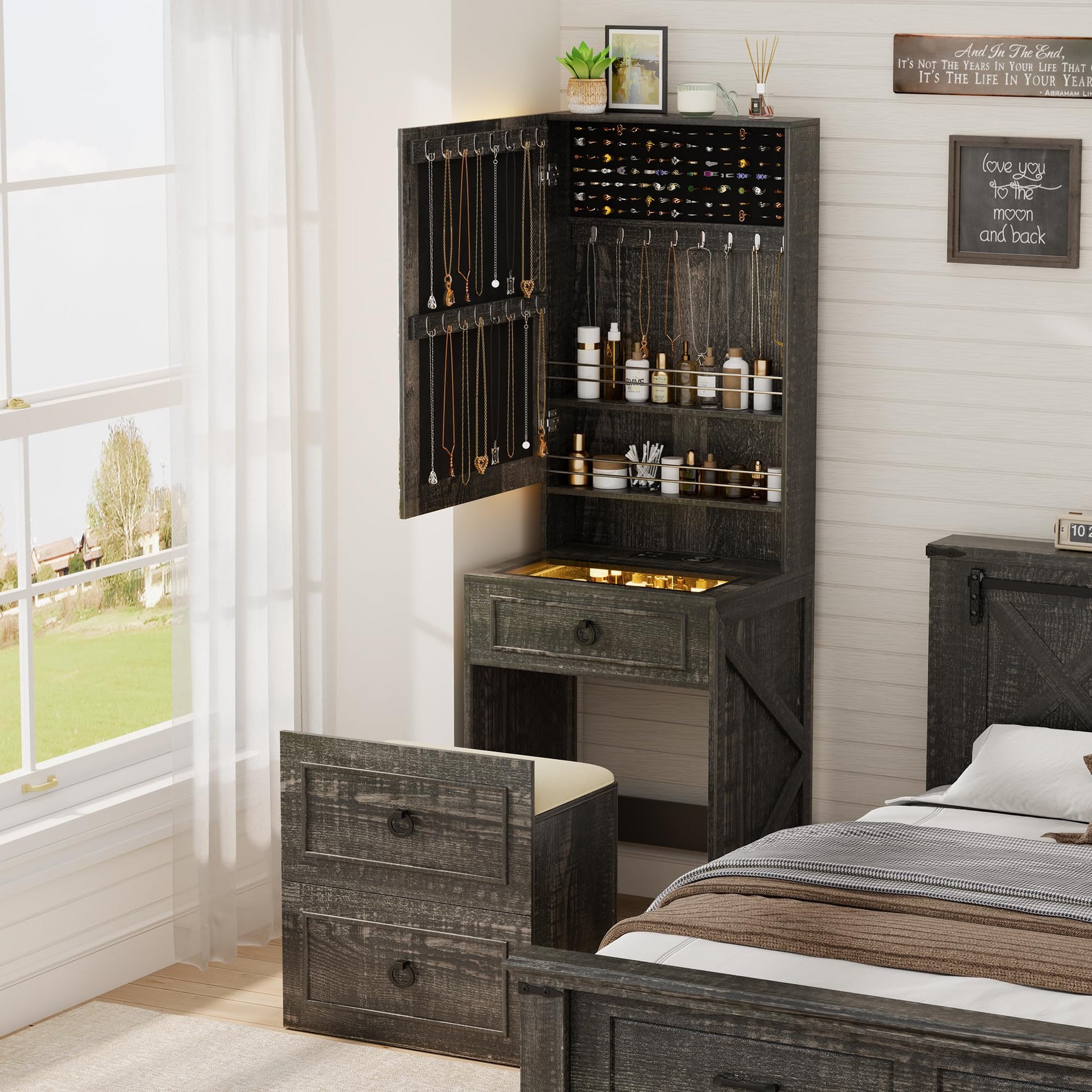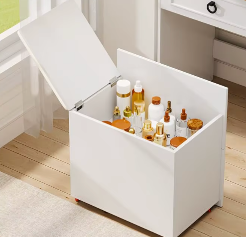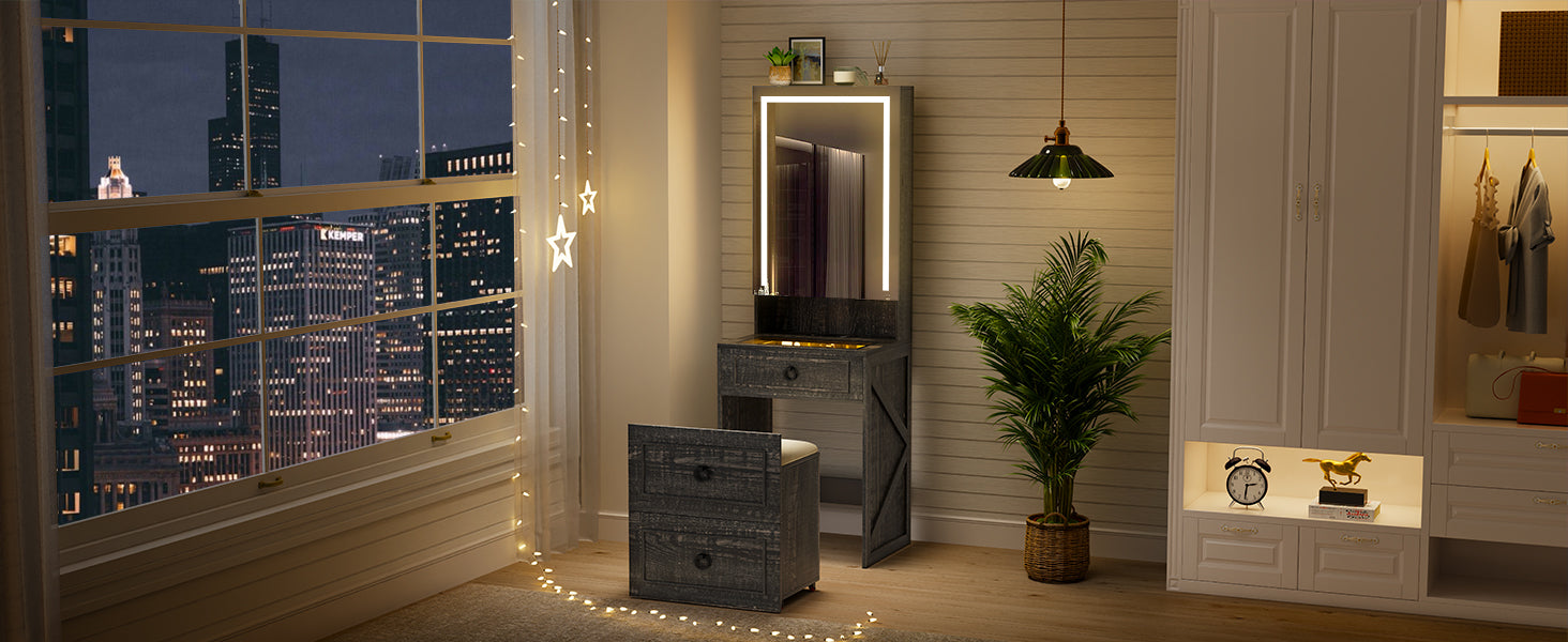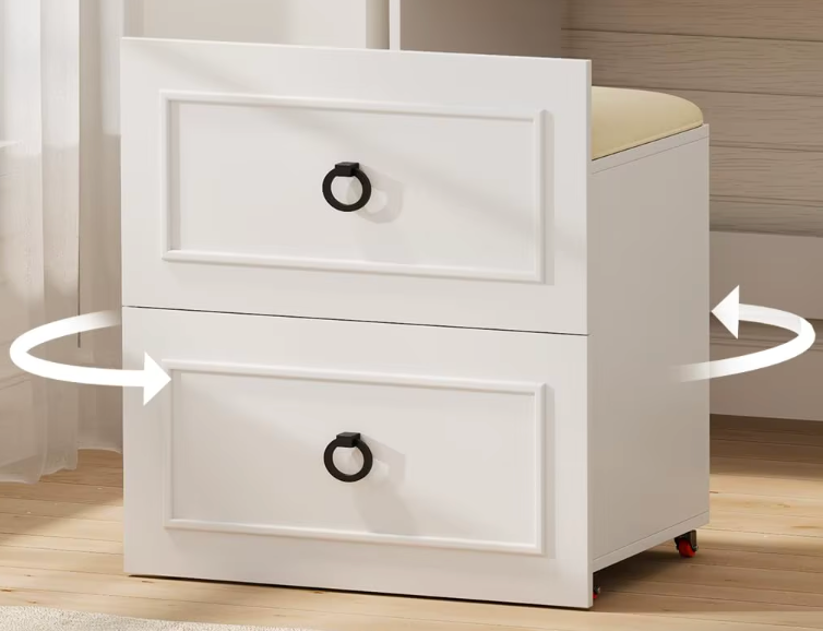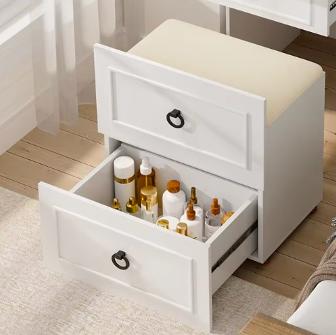 Il tavolo da trucco offre spazio extra per gioielli, con 108 scomparti per anelli/orecchini e 30 ganci per collane/braccialetti, proteggendoli dalla polvere grazie allo sportello con specchio.