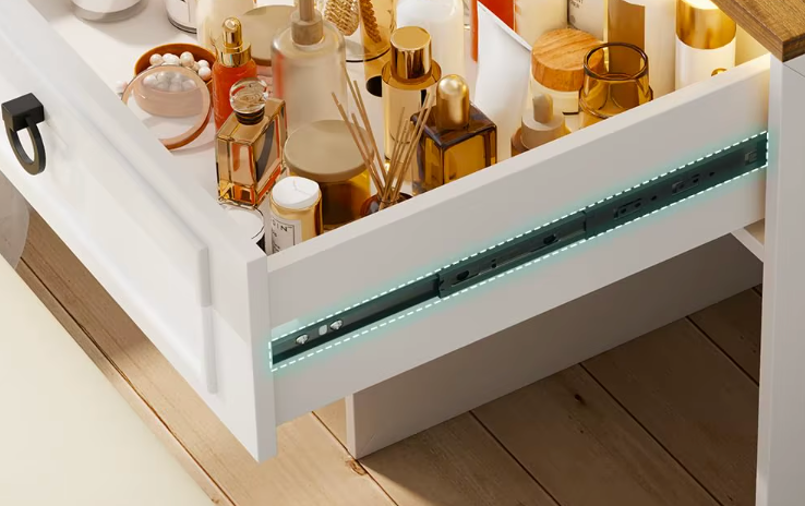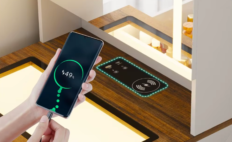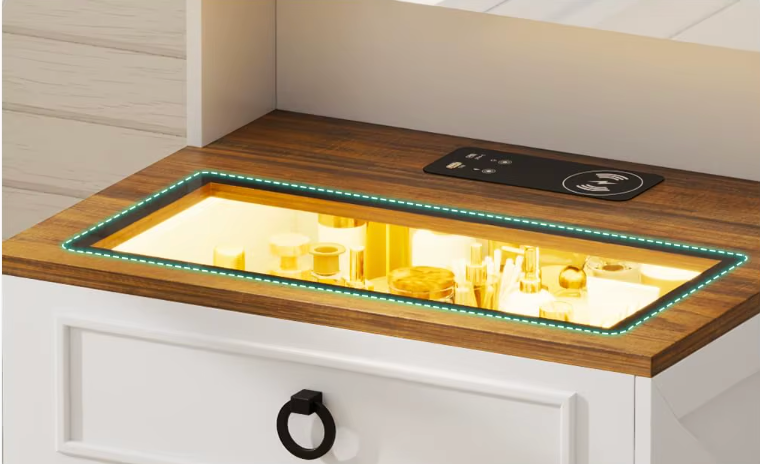 Questo tavolo da trucco ha porta USB, Type-C e ricarica wireless, con sensore di movimento per un uso intelligente.